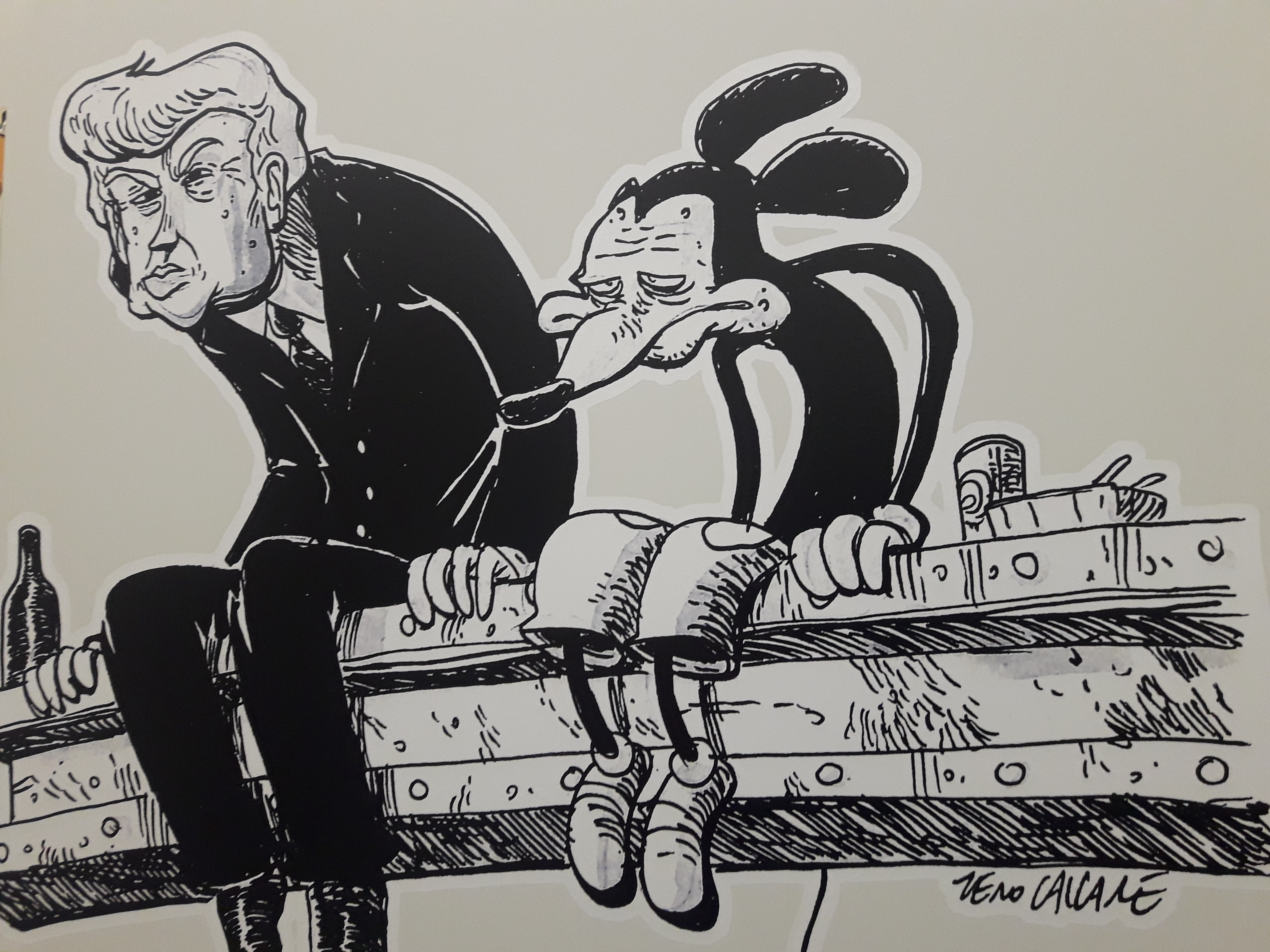 I suoi disegni evocano luoghi e sentimenti comuni, quali l’incertezza di un lavoro stabile, specialmente tra i più giovani, che come lui da sempre lottano per portare a casa una propria dignità, le disuguaglianze sociali sempre più marcate in questo mondo e la lotta per i diritti dei più deboli.