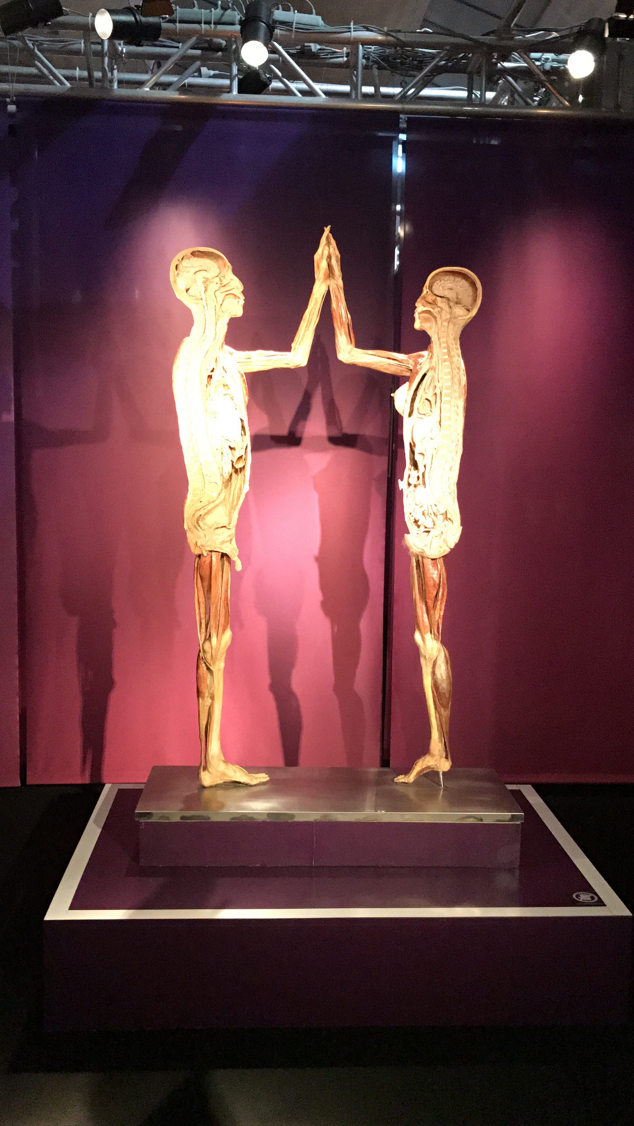 La mostra è un viaggio all’interno del corpo umano. Vi sono oltre 350 tra organi e corpi umani interi platinati in esposizione.