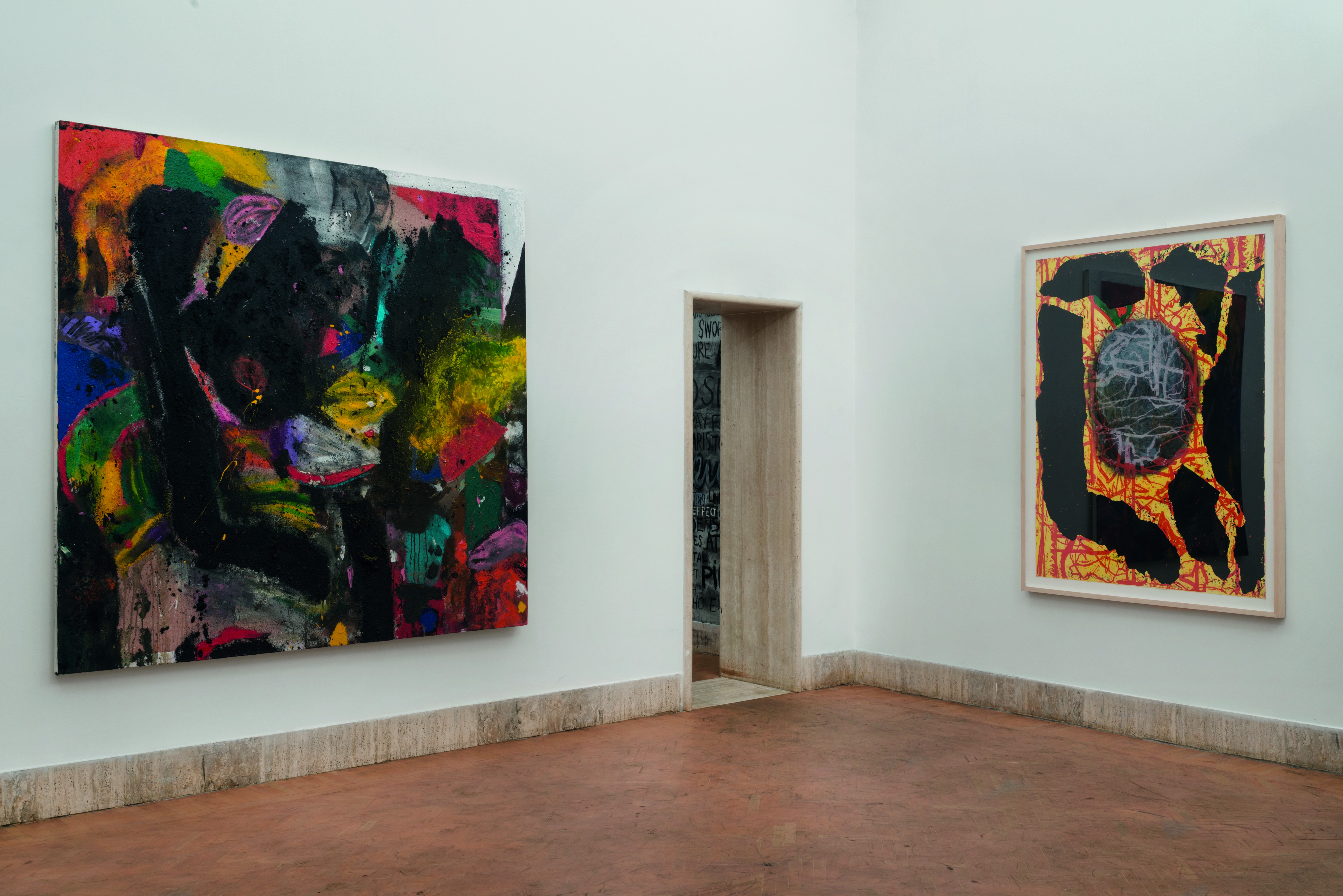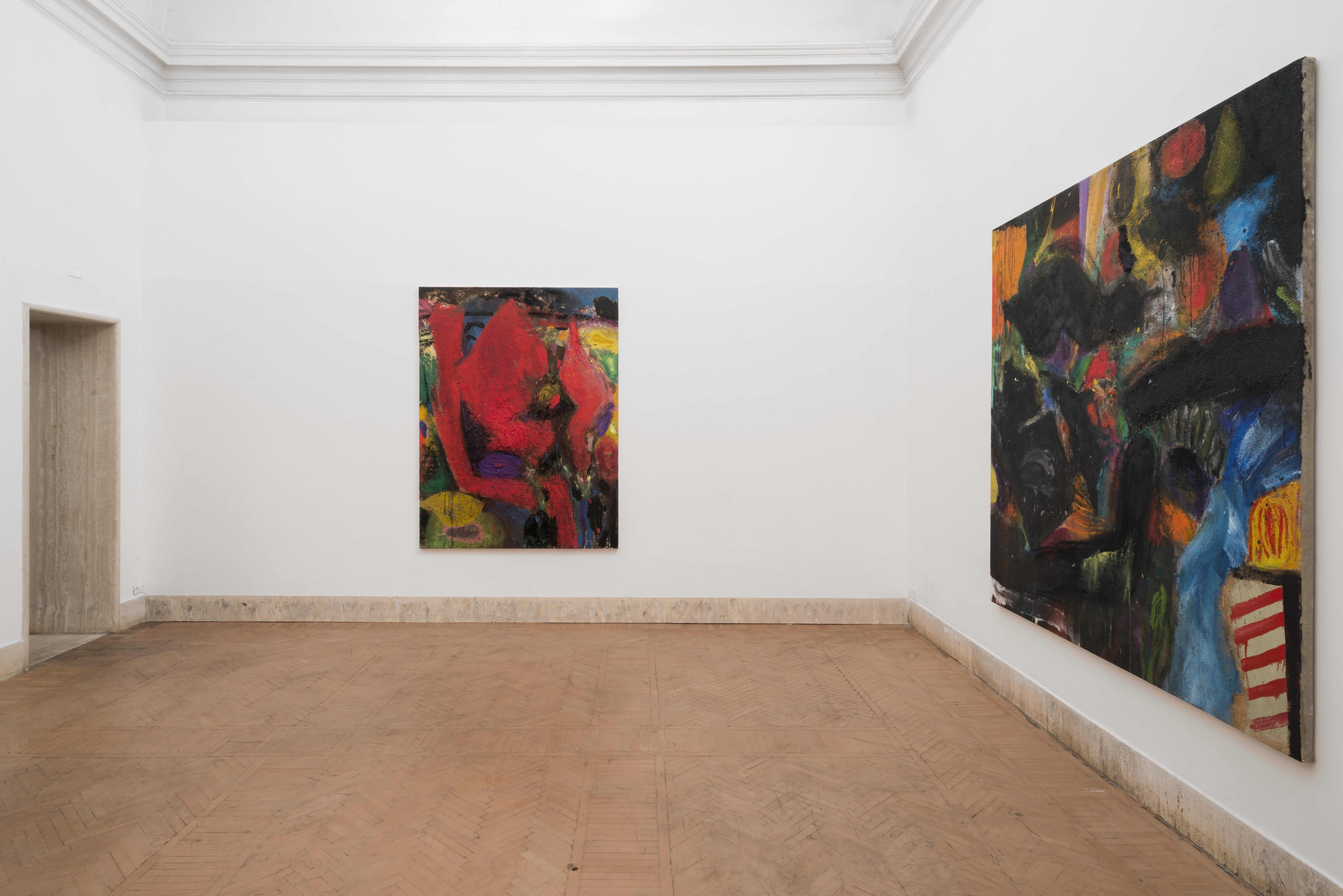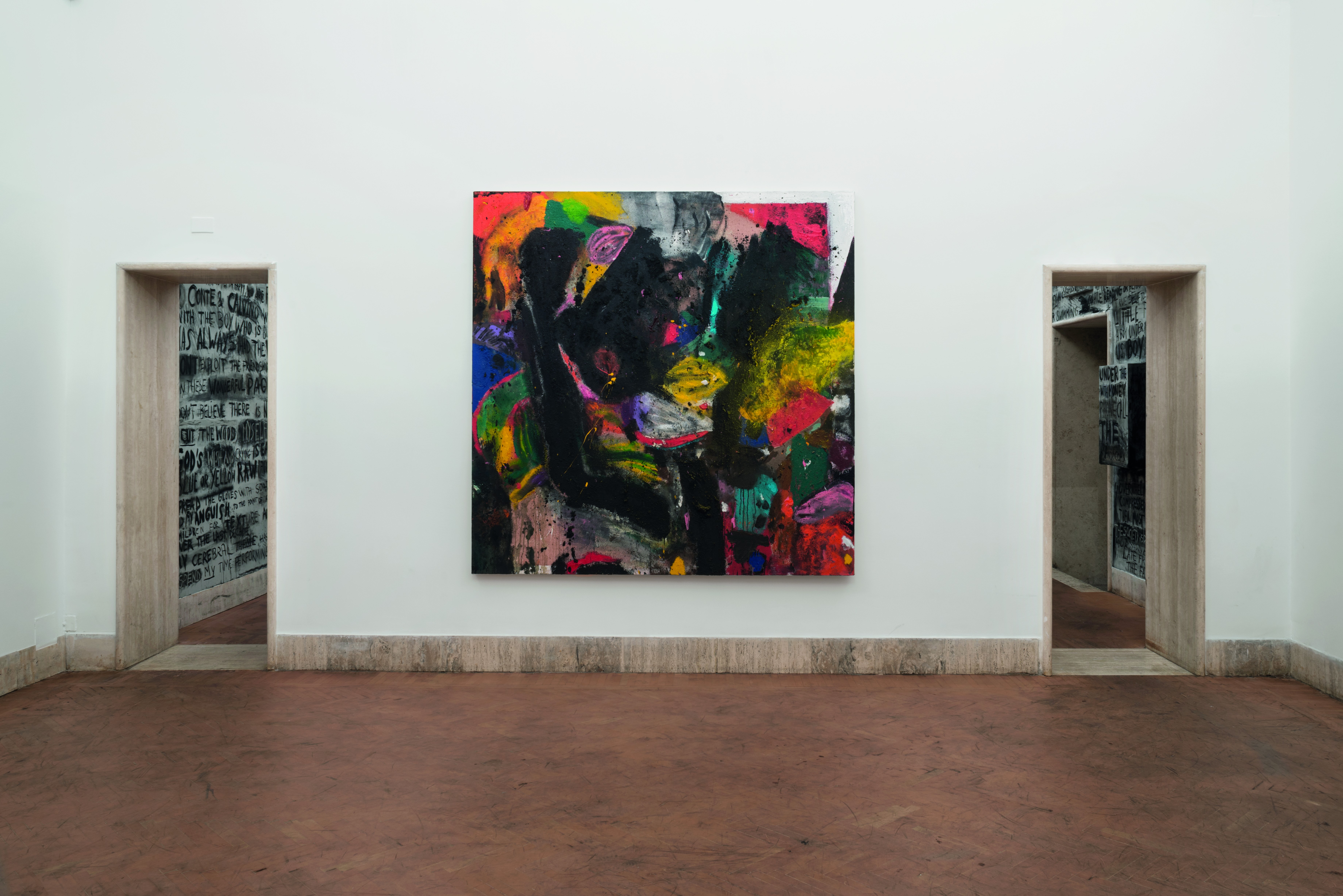 Sette sono le tele che riempiono le pareti dell’Accademia di San Luca e che per la prima volta vengono esposte al pubblico. Questi quadri sono stati preceduti da altri e seguiti da altri ancora ma per l’artista hanno un’importanza diversa. Cambiano i colori che diventano squillanti e si mischiano al nero, un nero usato come metafora del suo inconscio e non solo.