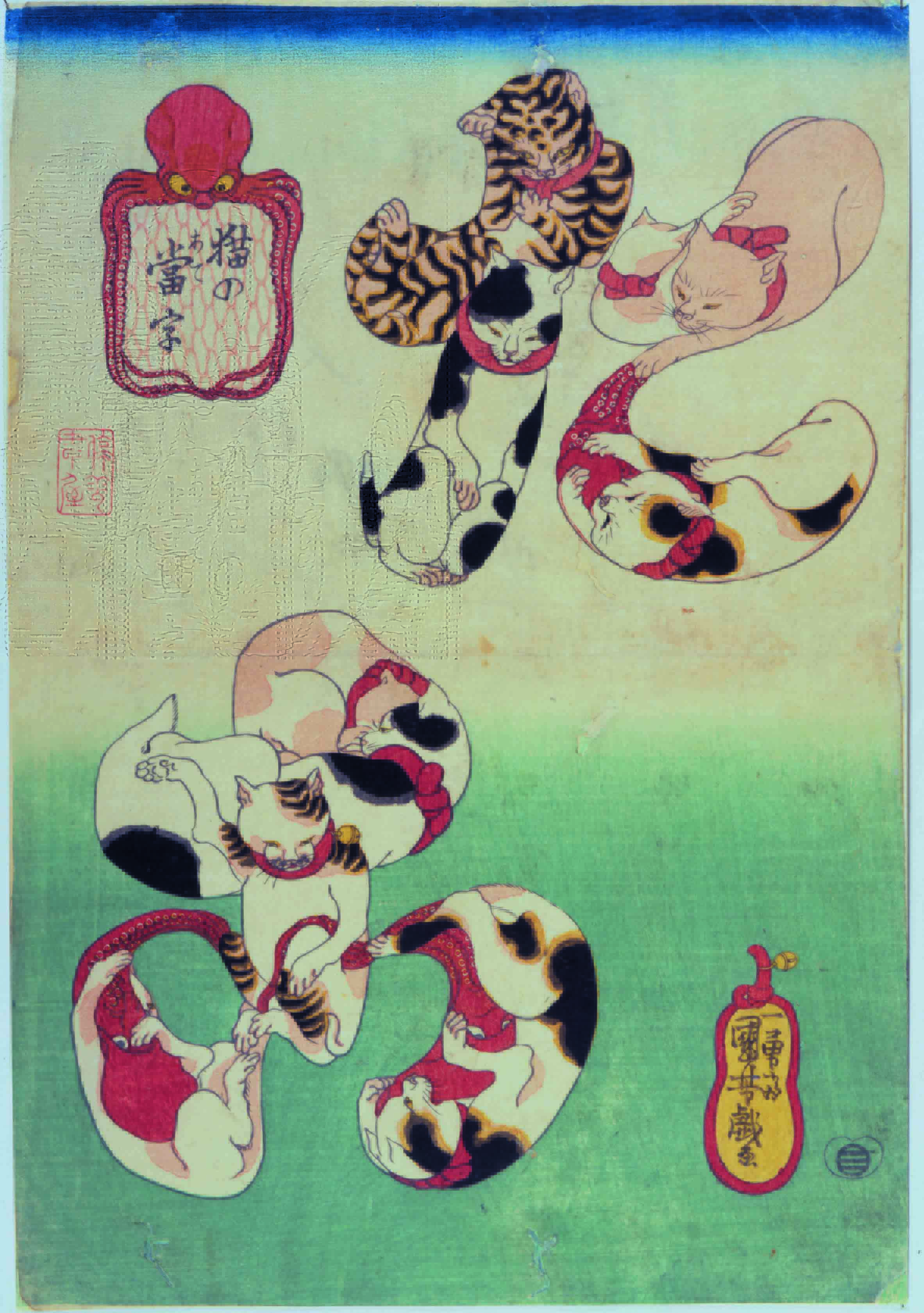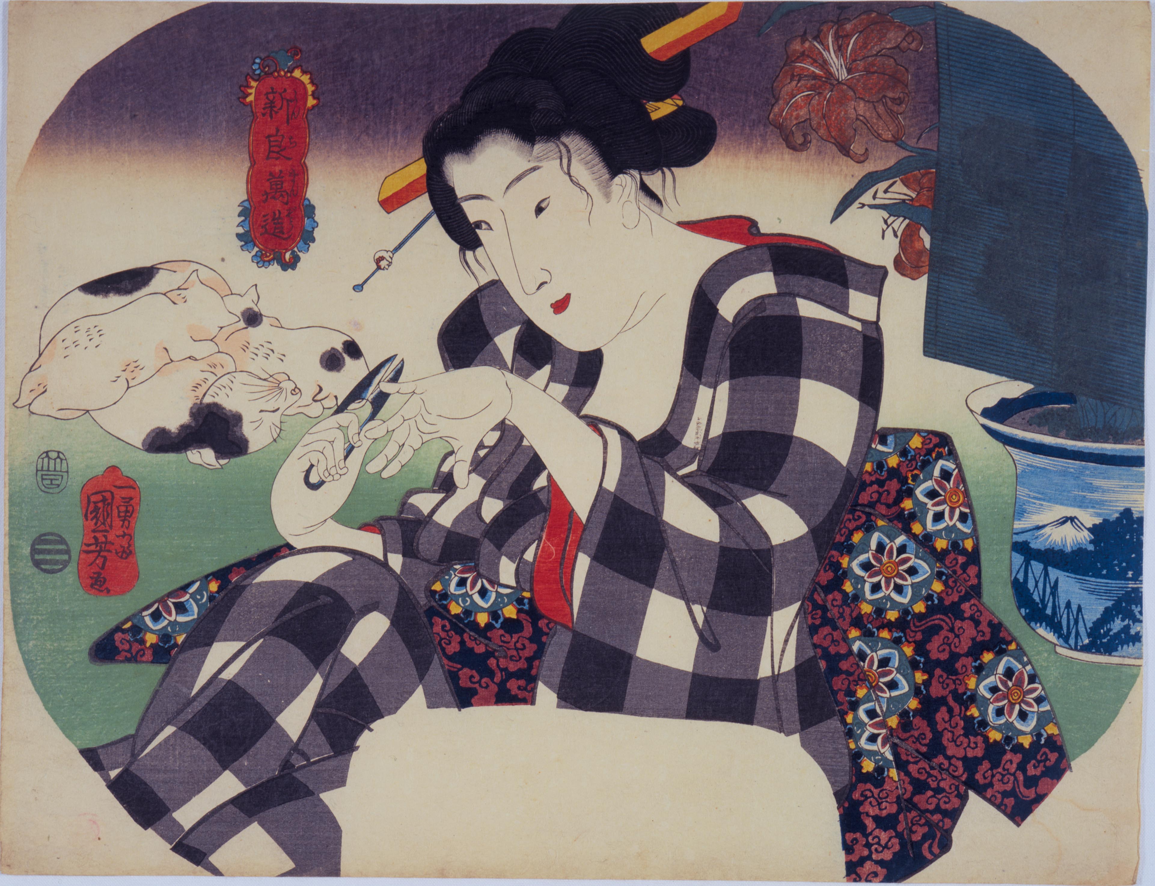 La sezione “Gatti” è invece dedicata alla passione forse più grande di Kuniyoshi, per la quale moltissime persone conoscono il “maestro dei gatti”, e che, insieme agli eroi, costantemente presenti in tutta la sua opera, è uno dei temi che rendono la sua personalità ancora più misteriosa ed eccentrica.