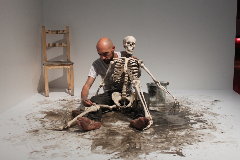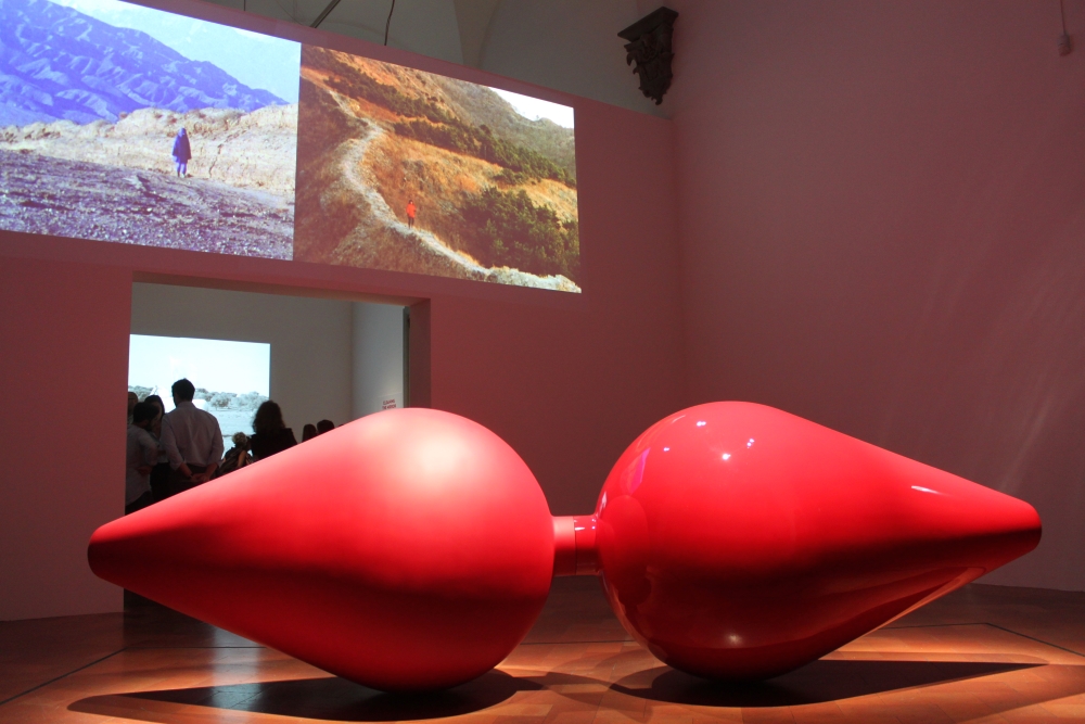 La mostra, spiega Galansino, ha tre livelli di lettura: espositivo (fotografie, video, installazioni, oggetti), interattivo (opere partecipative) e performativo (il museo diviene un teatro grazie al coinvolgimento dei ragazzi che fanno le re-performance secondo il metodo di Marina Abramovic). Scendendo nella Strozzina, in una delle prime sale possiamo osservare opere pittoriche inedite realizzate quando l’artista era ancora studentessa all’Accademia di Belgrado e il suo linguaggio espressivo era la pittura. Immediatamente percepiamo il bisogno di andare oltre non solo per la gestualità molto forte, ma anche per la scelta dei soggetti rappresentati, ovvero incidenti stradali. L’artista era già attratta dal pericolo.