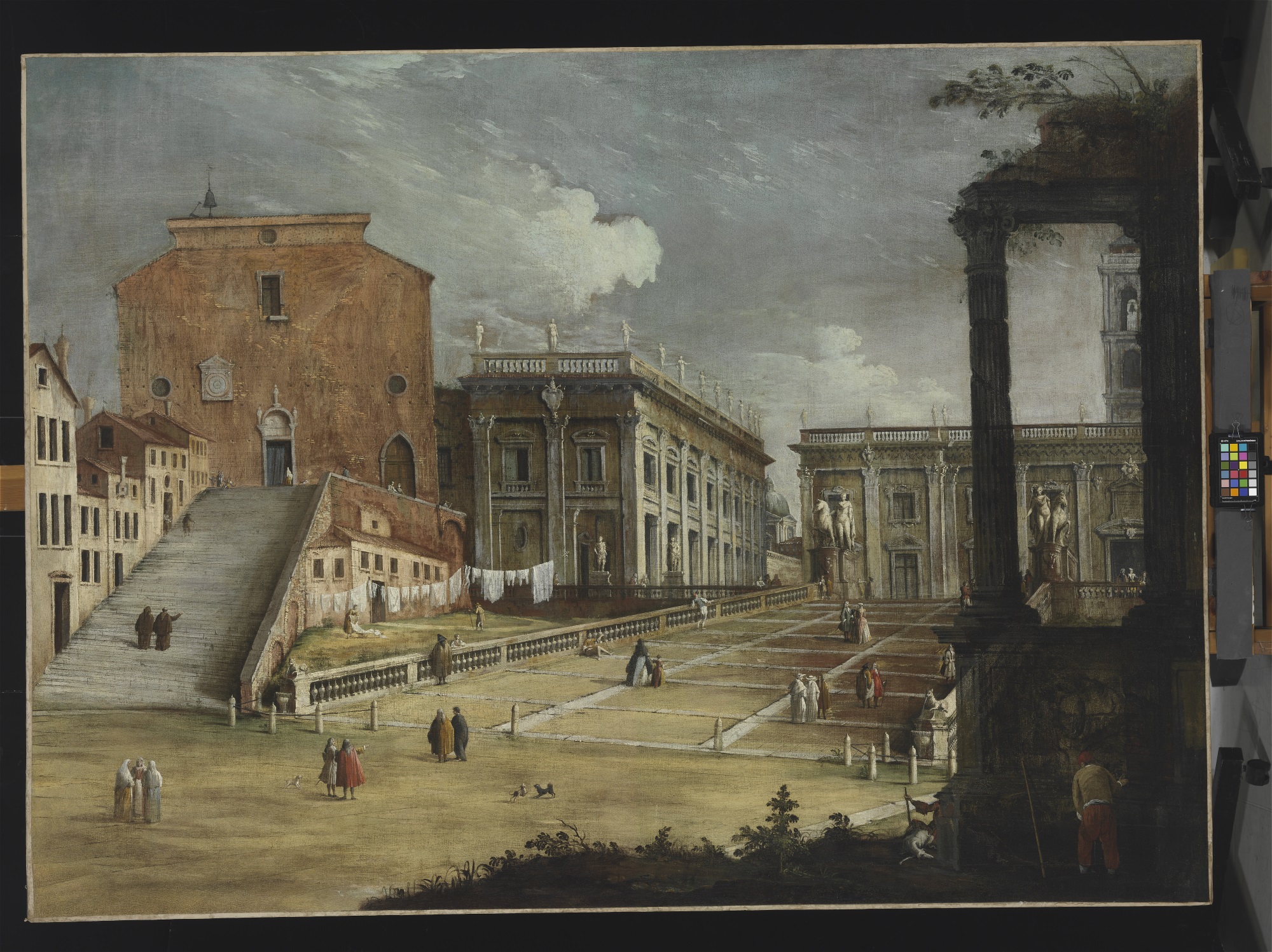 Salendo le scale, ci soffermiamo al primo piano. Ad accoglierci vi è una spiegazione che racconta le prime opere del pittore. Le opere romane. Sì perché, Canaletto, passa la sua giovinezza tra Venezia e Roma, come uomo di teatro e pittore di rovine romane. E infatti, alle nostre spalle, inizia ad affiorare il Campidoglio, piazza Navona, l’arco di Costantino. Intervallate da opere che illustrano Venezia in tutto il suo splendore.