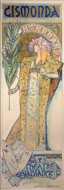 “Signor Mucha lei mi ha reso immortale” fu la frase che la Bernhardt disse abbracciando l’artista e che segnò l’inizio della fortuna di quest’ultimo grazie a un contratto di sei anni con la divina Sarah.