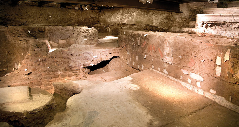 Così la Domus rinasce e riemerge dalle ombre del passato in tutto il suo splendore diventando un esempio unico di come il patrimonio artistico e culturale dell’antichità possa essere riconsegnato al presente grazie ad una rigorosa opera di riqualificazione e restauro. Sotto i nostri piedi, a ben sette metri dal livello stradale, si trovano infatti i resti di una ricca dimora (confermato dalla presenza degli spazi termali) probabilmente appartenente ad una potente famiglia dell’epoca, di cui si conservano mosaici, pareti decorate, pavimenti policromi, colonne e statue che attraverso un percorso suggestivo è possibile ammirare in tutto il loro ritrovato splendore.