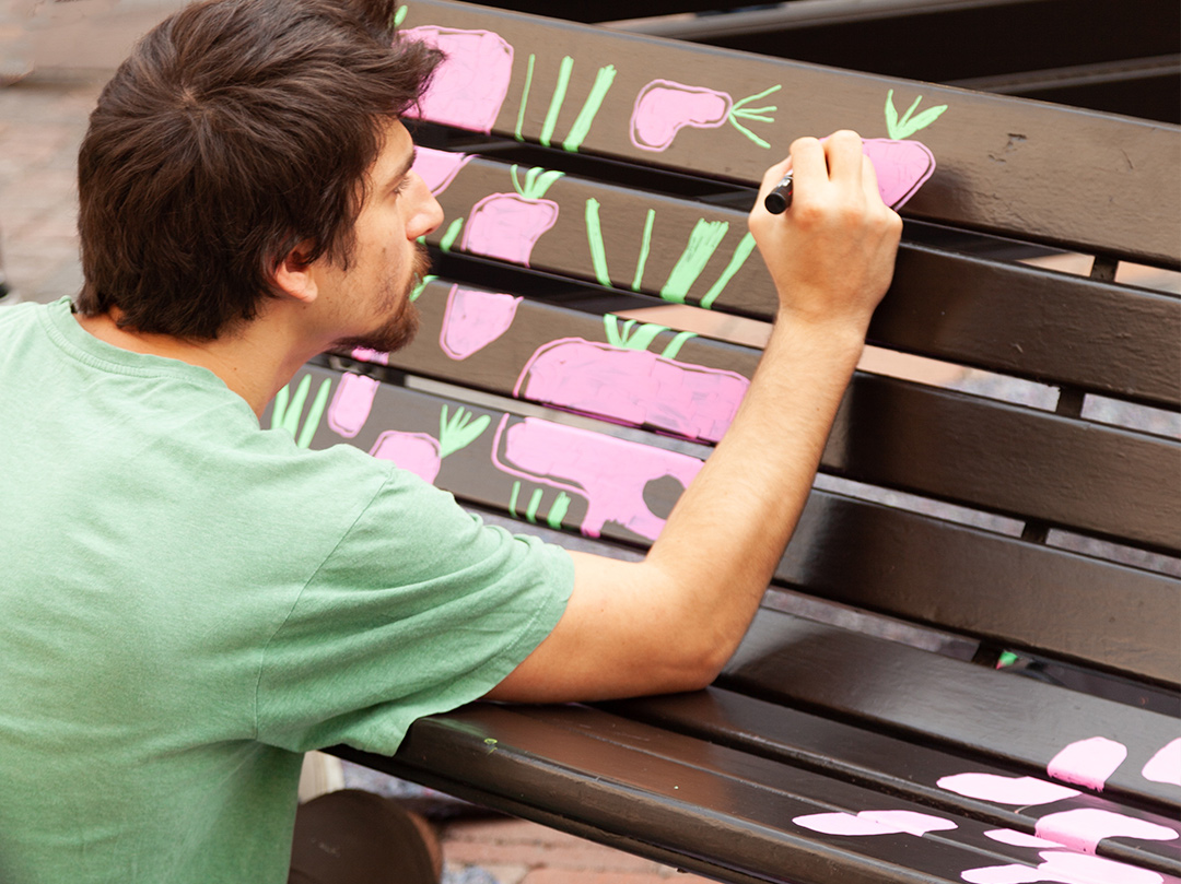 Una street art che non coinvolge i muri, insomma, ma interessa un supporto che, con questo intervento, diventa non solo piacevole per il suo scopo principalmente riposante, ma anche per lo sguardo.