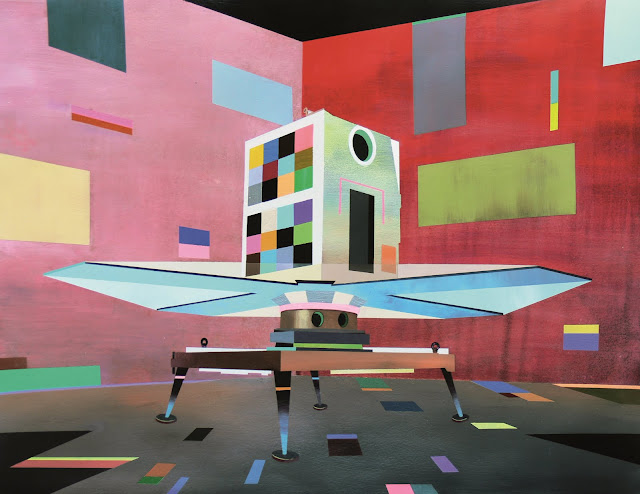 A completare la mostra altre opere su carta, realizzate con pittura spray e acrilico, aquarello, pittura spray e collage, pittura spray gouache e collage. Il punto di inizio sono le visioni futuristiche di quello che sarebbe stato il nostro destino, quello che vedevamo come futuro e che adesso è il presente, raccontando di gruppi di ricercatori che vagano tra edifici futuristici oppure come la colonizzazione di Marte e della Luna può essere interpretata nel loro insieme perché hanno qualcosa in comune o singolarmente. Tra tutte le opere su carta trovo di una bellezza sconcertante “Our Hope Reflected Jewels in the sky”,2012, per i colori e la visione futurista.