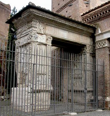 Nelle immediate vicinanze della Chiesa di San Giorgio al Velabro, si notano infatti due importanti archi: l’Arco di Giano, il cui nome si riferisce al dio bifronte protettore di porte e passaggi, anche se in realtà il monumento è da identificare con l’arco costruito nel IV secolo d.C. all’epoca dell’imperatore Costantino; poco più avanti l’Arco degli Argentari, eretto nel 204 d.C. dai banchieri e commercianti del Foro Boario, nel punto in cui l’antica strada urbana del vicus Jugarius raggiungeva la piazza del mercato. All’interno dell’arco si riconoscono inoltre, a rilievo, i ritratti della famiglia imperiale dei Severi: da un lato Settimio Severo e la moglie Giulia Domna, dall’altro i due figli della coppia, Caracalla e Geta, il cui volto fu però cancellato dal fratello dopo l’uccisione per la salita al potere, disponendo per lui la damnatio memoriae (condanna della memoria).
