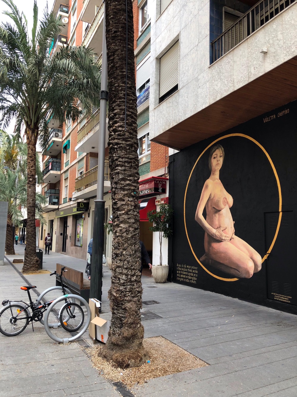 Gandia, provincia di Valencia. Presso calle de la República Argentina 50 appare un murale con una ragazza nuda e incinta.