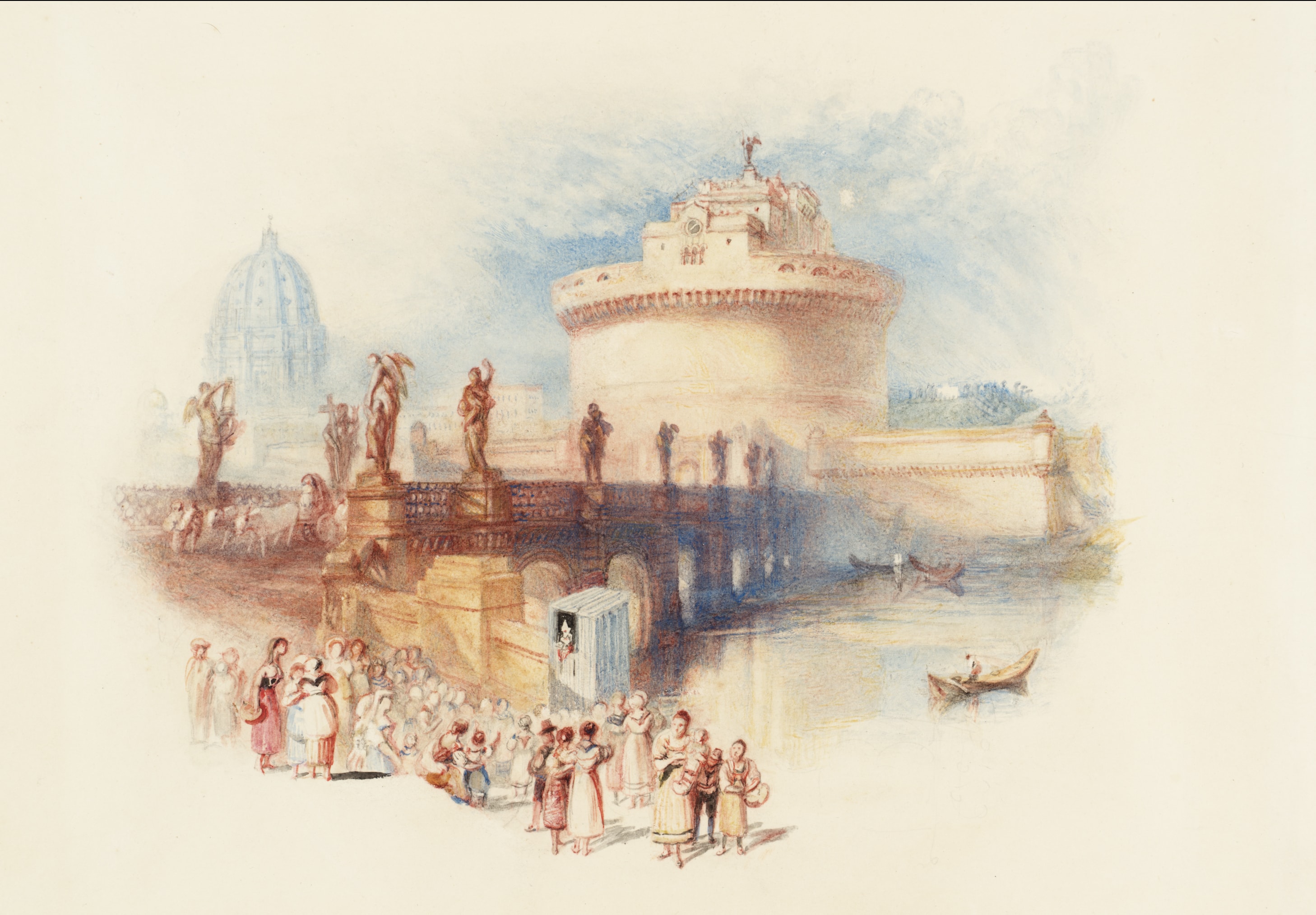 Donato alla Gran Bretagna nel 1856, cinque anni dopo la morte dell’artista, da allora la maggior parte del lascito Turner è conservato presso la Tate. Nelle sale del Chiostro del Bramante si dà ampio spazio agli acquerelli, importanti per la definizione dello stile di Turner, senza dimenticare i disegni, gli album e una selezione di olii su tela.