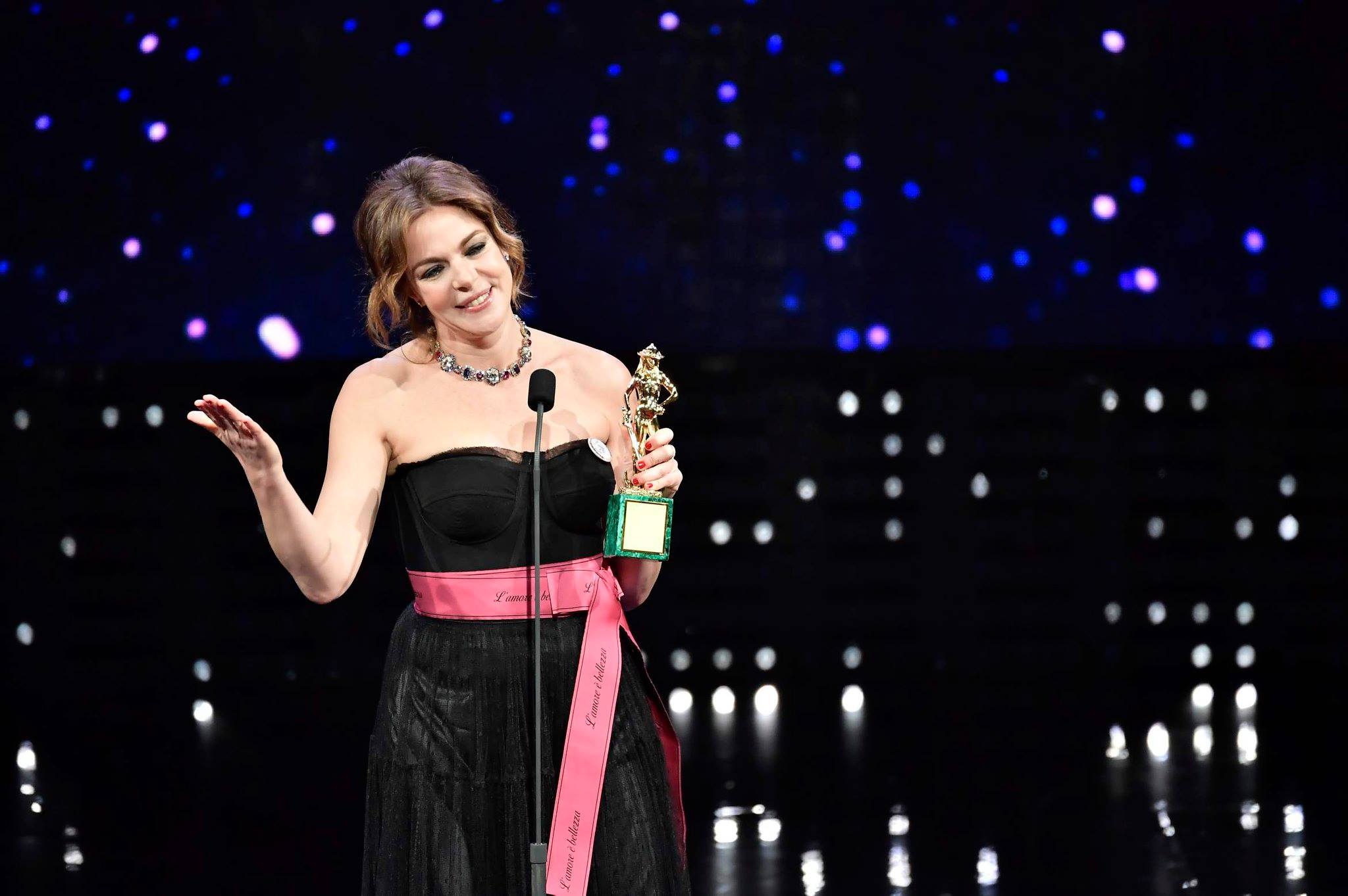 Sul palco, tra gli altri, Monica Bellucci, Pierfrancesco Favino, Roberto Bolle, Giorgia, Carmen Consoli e Malika Ayane.