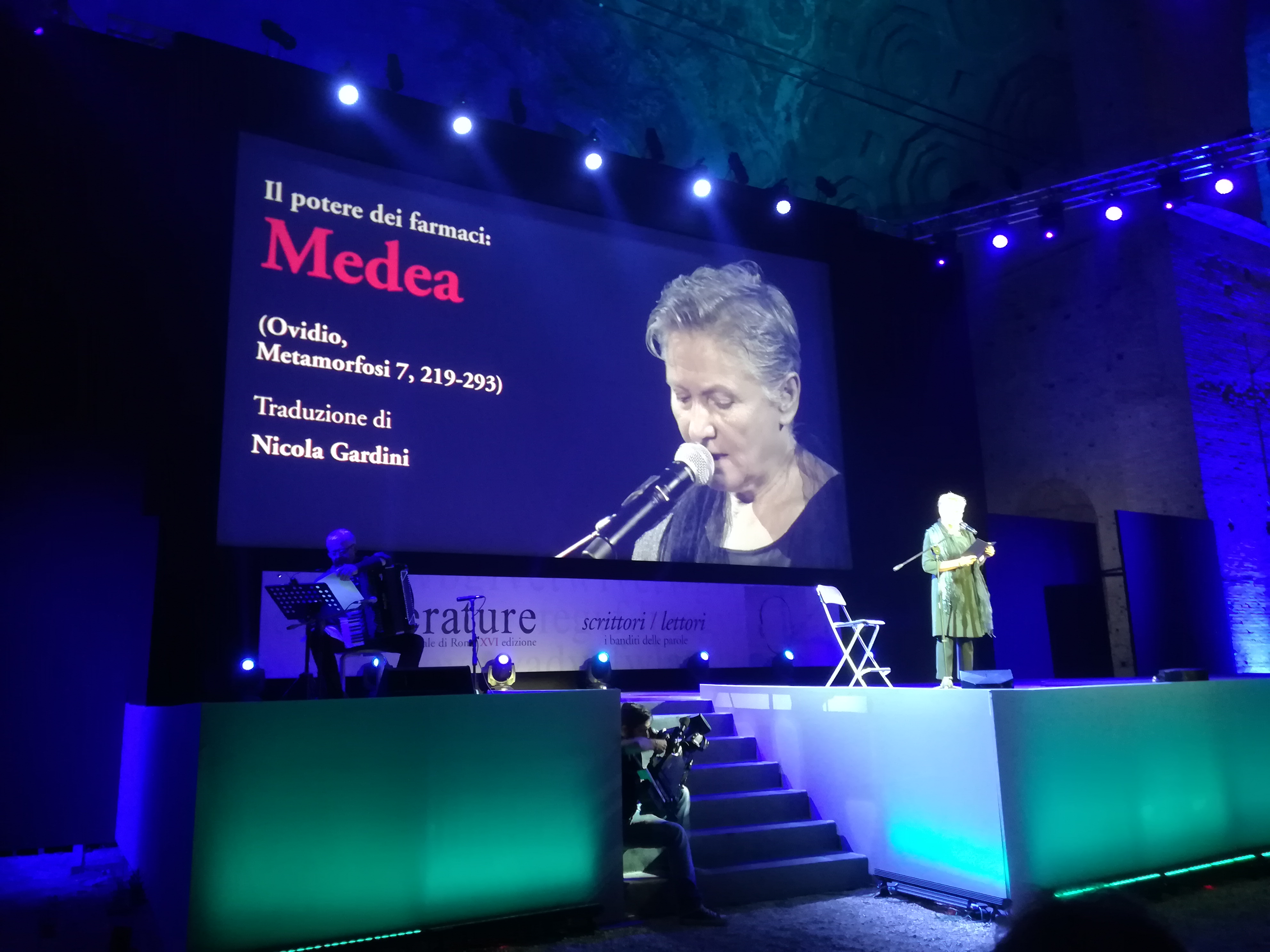 Fenomenale in scena la performance di Mariangela Gualtieri: quando ha letto il passo sull’incantesimo di Medea che ringiovanisce Esone, sembrava di essere lì, di fronte alla principessa della Colchide che sparge sangue e miscela ingredienti innominabili.