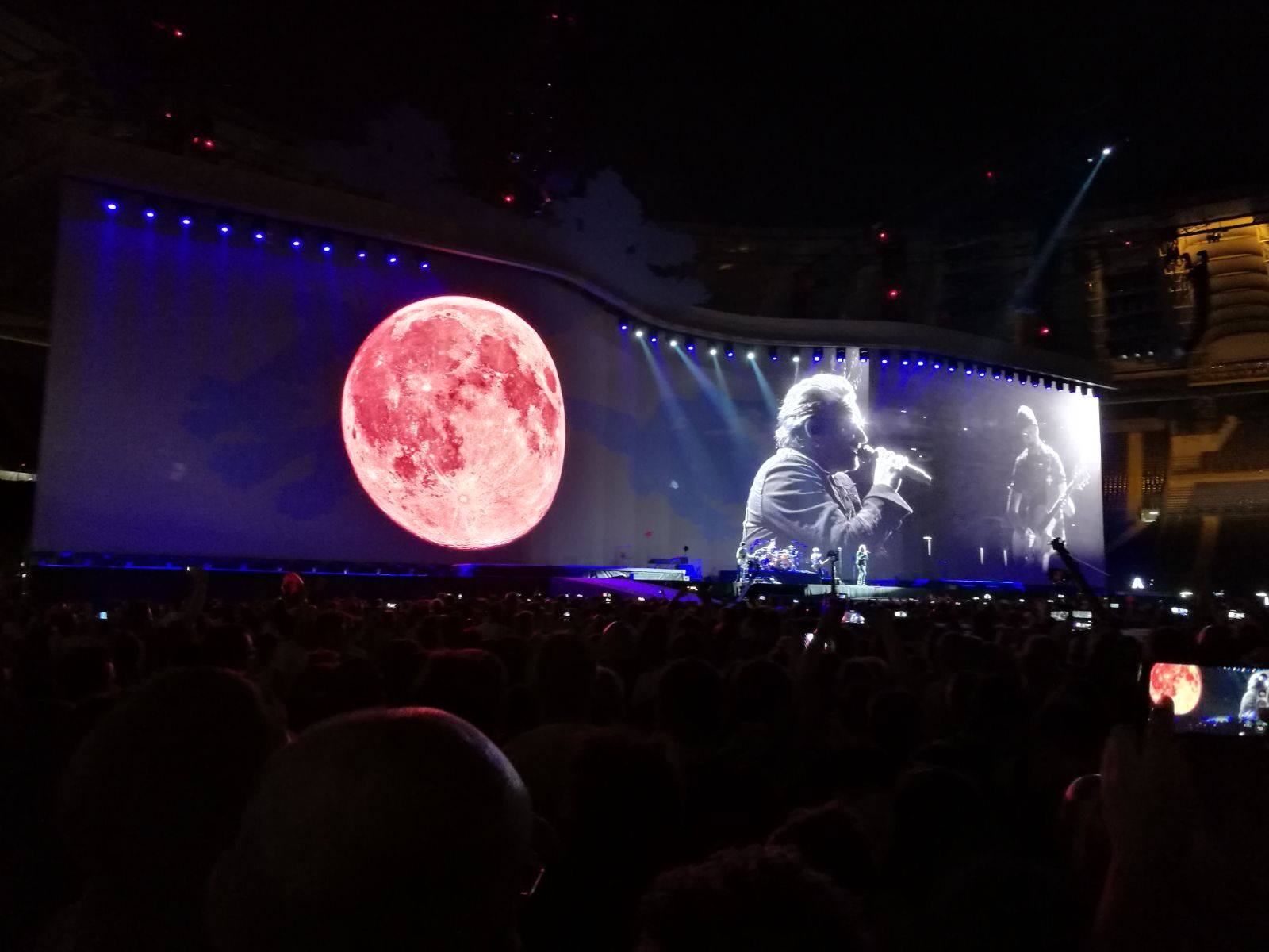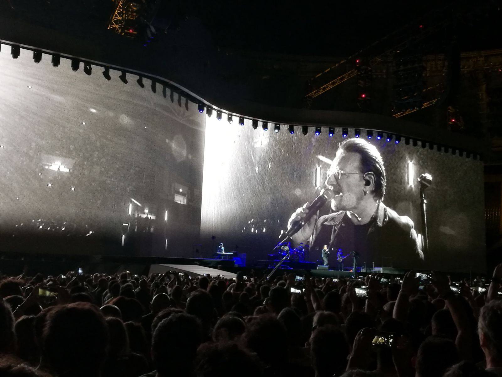 L’entusiasmo si percepisce nelle voci dei 58000 presenti che si sommano a quella di Bono, davvero in ottima forma. Il maxischermo è spento, dei semplici fari bianchi illuminano la band, niente fuochi d’artificio, niente effetti speciali. Siamo davvero solo noi e la musica, e ci basta. L’intento è volutamente quello di rievocare l’essenzialità dei concerti degli anni ’80. Chi c’era 30 anni fa rivive le emozioni di un tempo, chi non c’era è grato di poterne godere almeno per una volta.