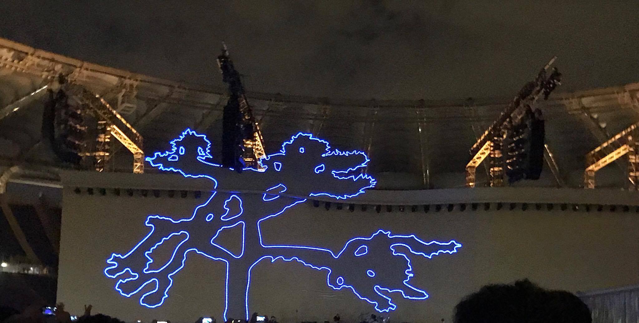 Il pubblico diventa protagonista. 40000 fogli gialli e neri vengono tenuti in mano dagli spettatori delle tribune e formano lungo tutto l’Olimpico la scritta “30” e la sagoma del Joshua Tree.