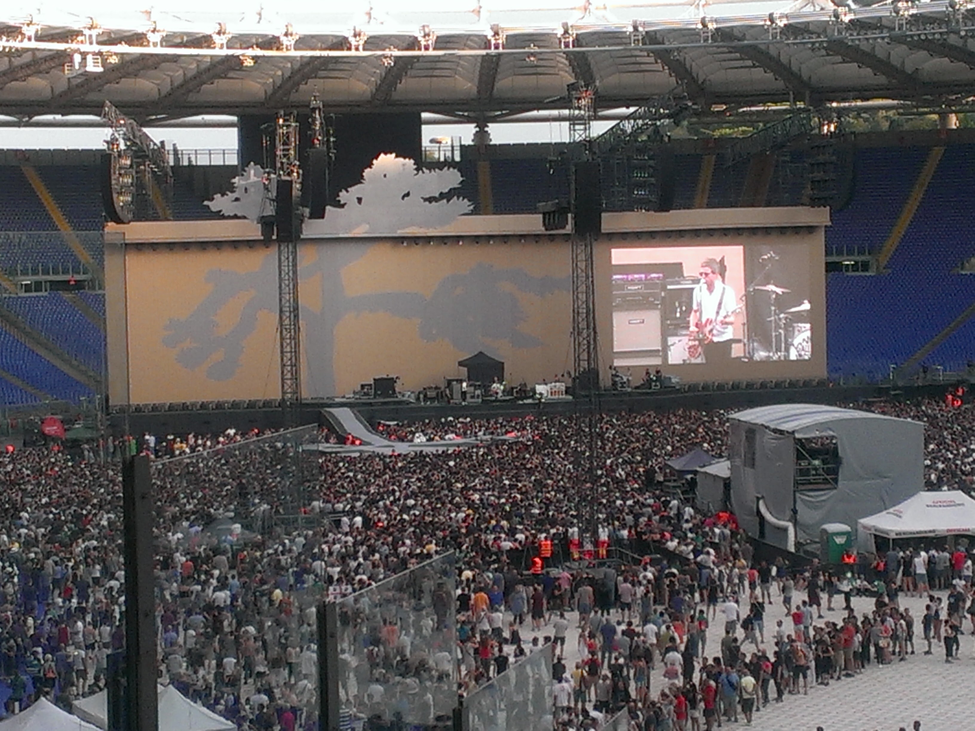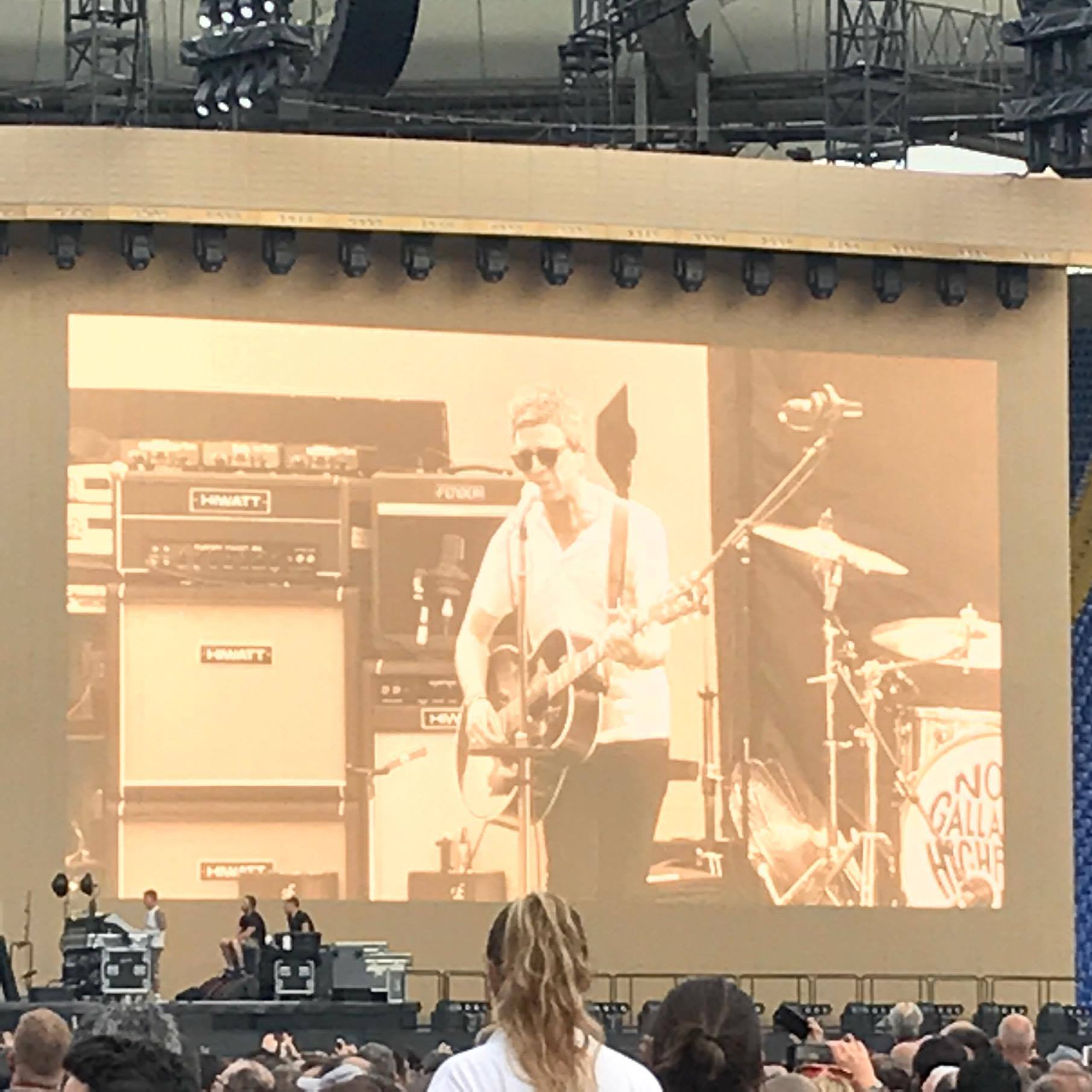 Prima dell’arrivo degli U2 sul palcoscenico, previsto per le 21.30, apre la serata Noel Gallagher, ex chitarrista e seconda voce degli Oasis, con la sua band, gli High Flying Birds. Per più di un’ora canta i grandi successi dei suoi due gruppi. È un vero e proprio concerto e gli spettatori intonano assieme a lui le canzoni più celebri. Come trattenersi, per esempio, sul ritornello di Wonderwall e di Don’t look back in anger!