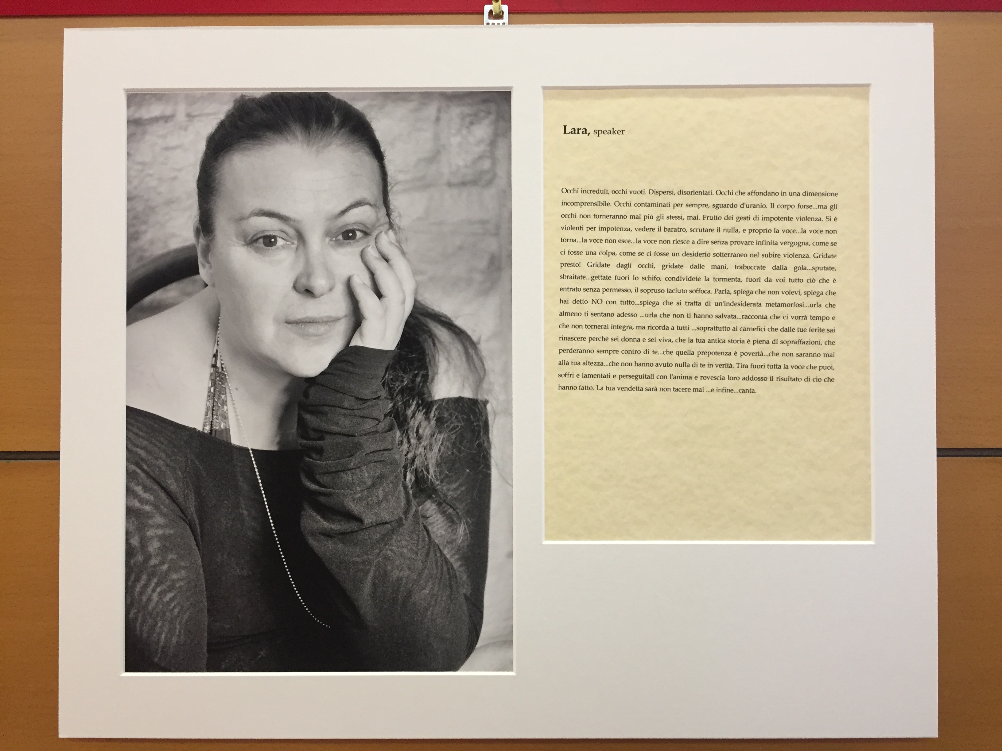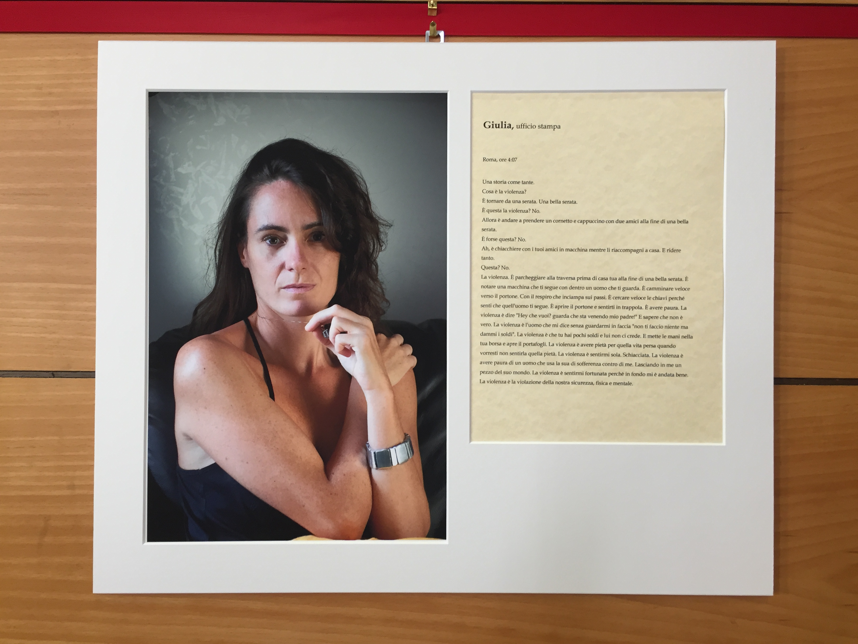 A immagini e parole, nella mostra presentata il 20 Maggio, vengono affiancate anche la musica e la recitazione. Le poesie e i testi sono stati narrati da attrici, anche loro presenti nel libro come testimoni, che li hanno resi ancora più potenti e strazianti. La lettura è stata intervallata a momenti musicali in cui un’altra delle donne coinvolte nel progetto ha interpretato con intensità quattro pezzi riguardanti l’argomento (“La donna di plastica-Simona Molinari”, “Woman Is the Nigger of the World-John Lennon”, “Winter On The Weekend-Julia Stone”, “The Magdalene Laundries-Joni Mitchell”).