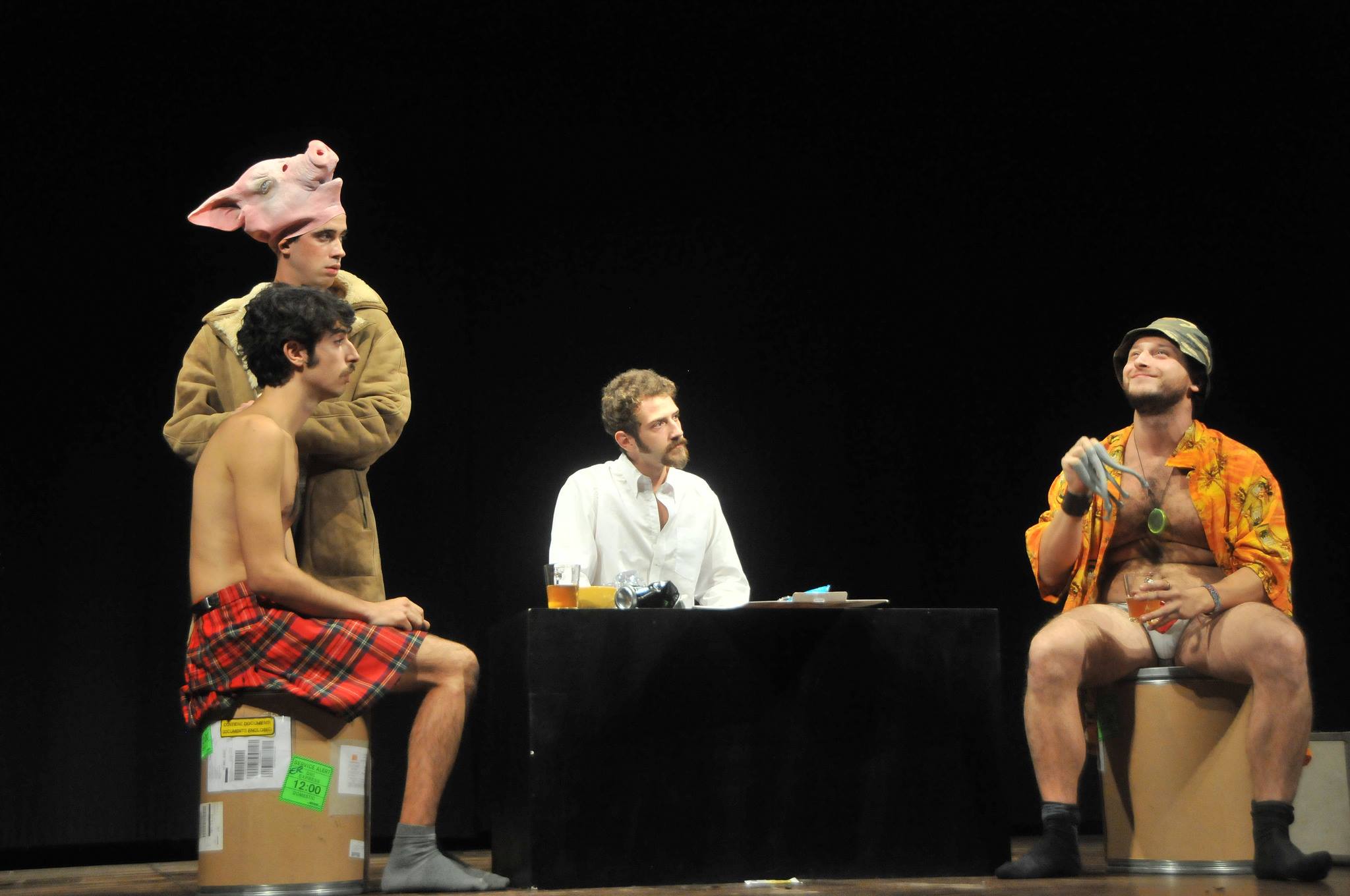 C’è ritmo e gli interpreti sanno ben stare sul palco. Si caratterizzano e si differenziano, in una scena scura e omologata a cubi. Per capirne le doti, si pensi a dove è situata la cucina. Dietro a una cassa rivoltata, i ragazzi ‘spingono’ un bottone e…scendono giù meccanicamente, come se un ascensore li portasse: cosa resa dalla loro abilità fisica.