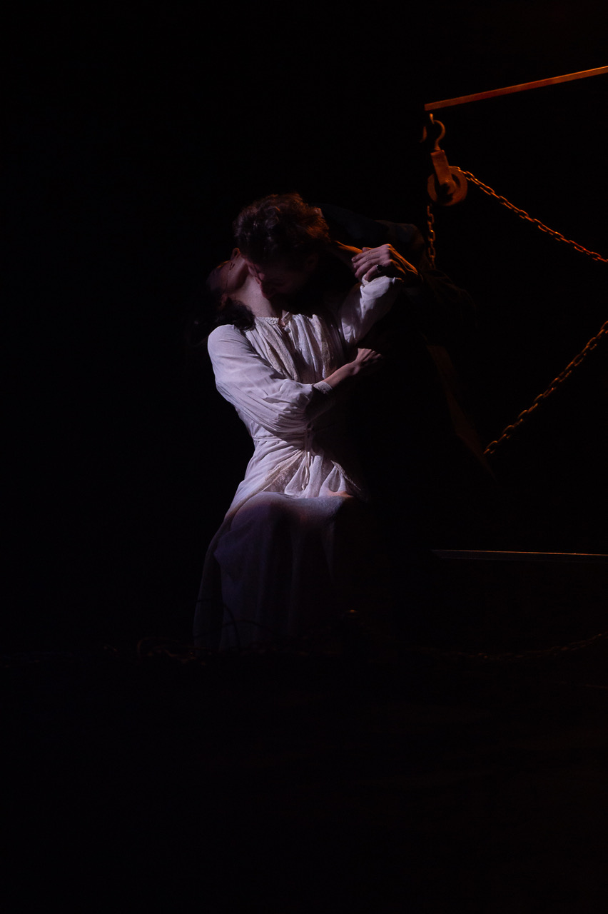 La scenografia è molto semplice e al tempo stesso impressionante: solo qualche velo di stoffa e un gioco di ombre per realizzare un castello davvero pauroso. Emozionante la nevicata che ad un certo punto rende tutto più suggestivo.