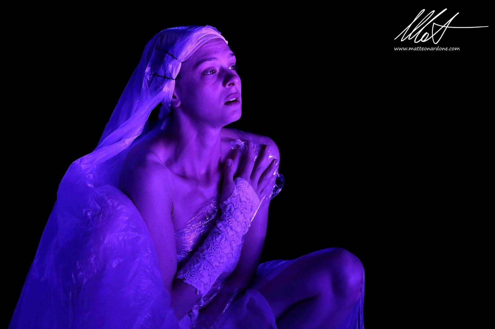 | Nausicaa, alias Lara Balbo, e il suo dolore in un abito da sposa fantasma. Foto su concessione di Matteo Nardone – matteonardone.com |